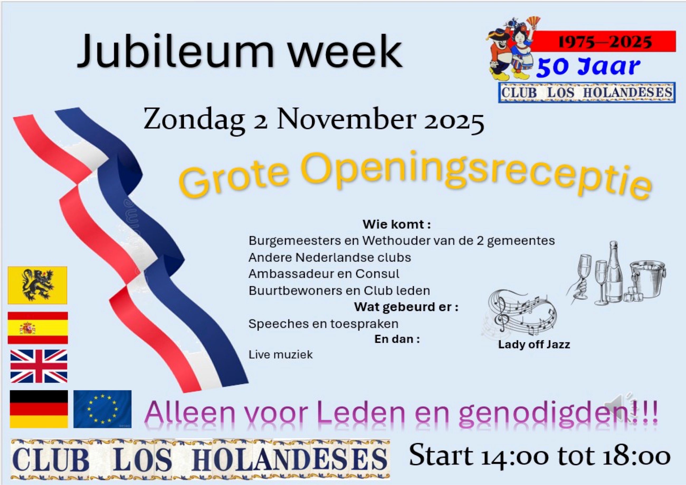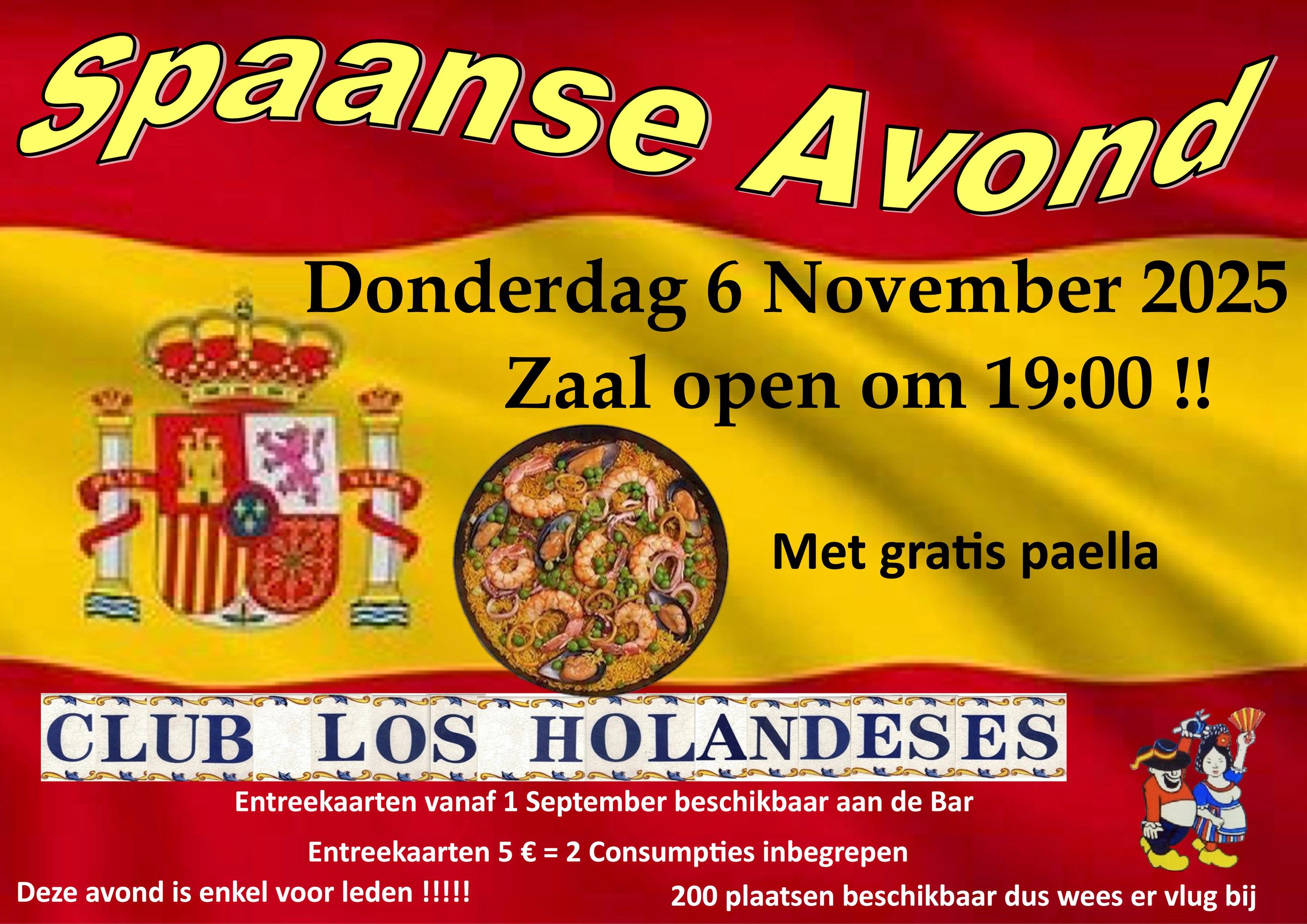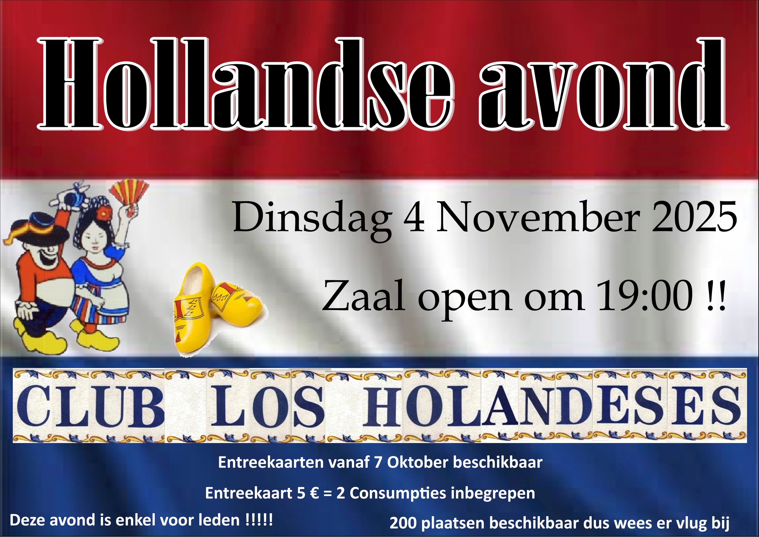 Deze avond is uitsluitend toegankelijk voor Leden van Los Holandeses die hiervoor een toegangsbewijs hebben gekocht. Dit toegangsbewijs is niet overdraagbaar aan anderen, hier wordt op gecontroleerd.